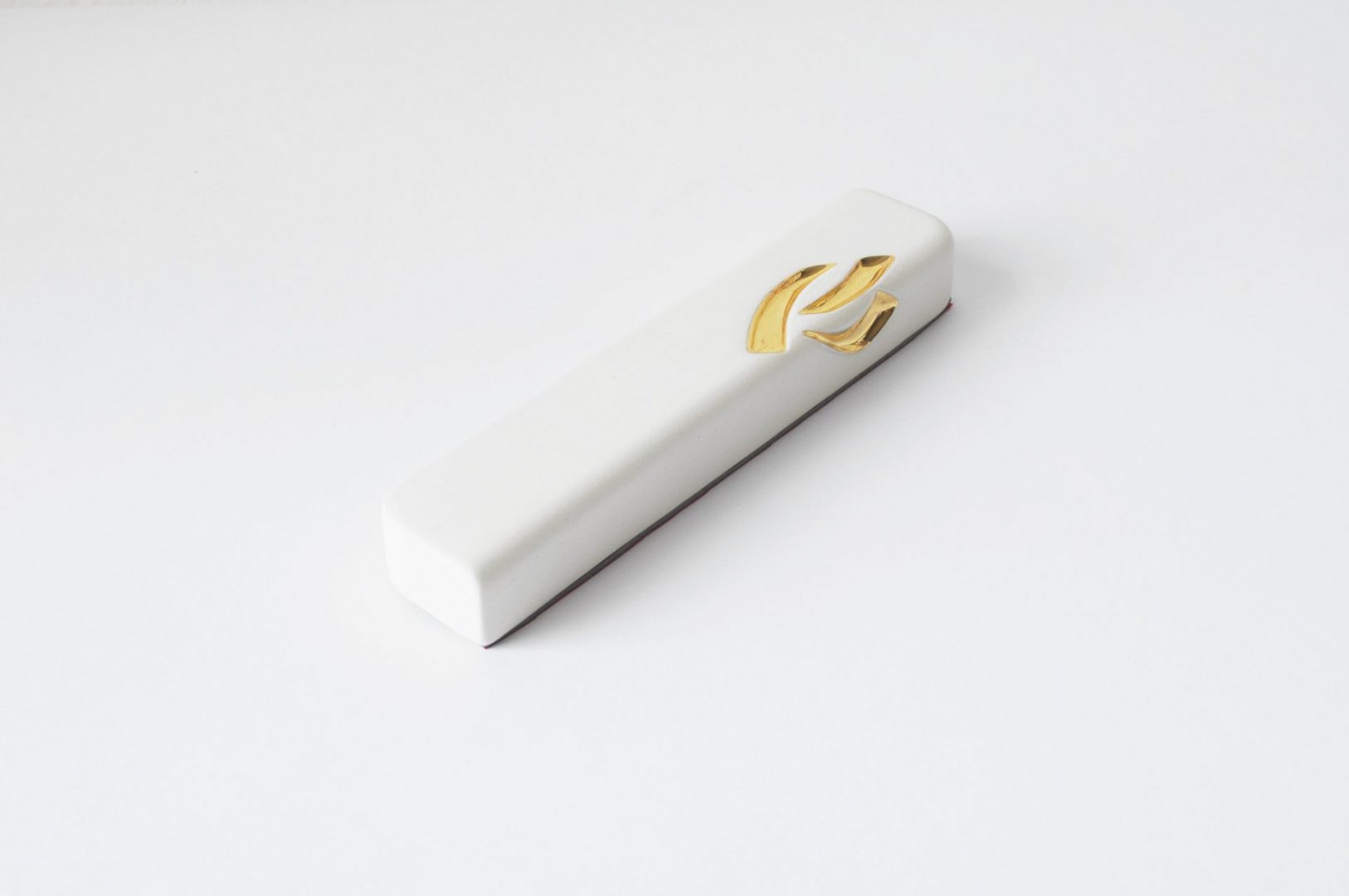 מודרני ומינימליסטי. האות שי״ן מוטבעת על זווית המזוזה. מתנה מהודרת לבית ולמשרד.