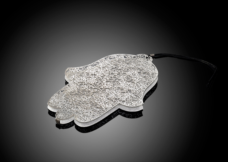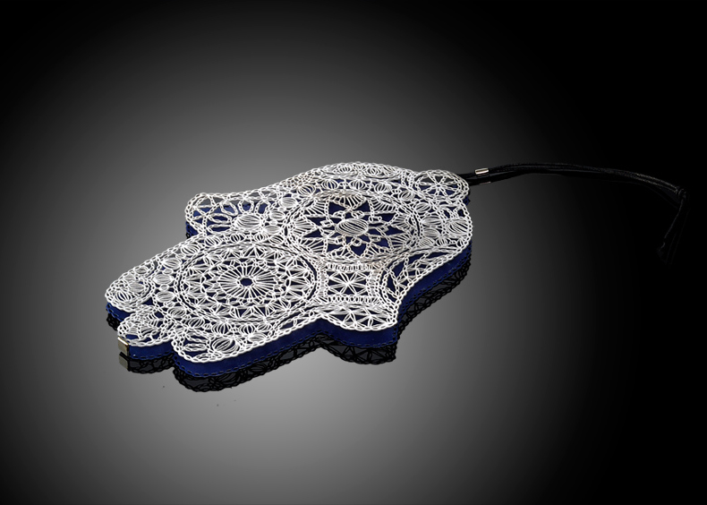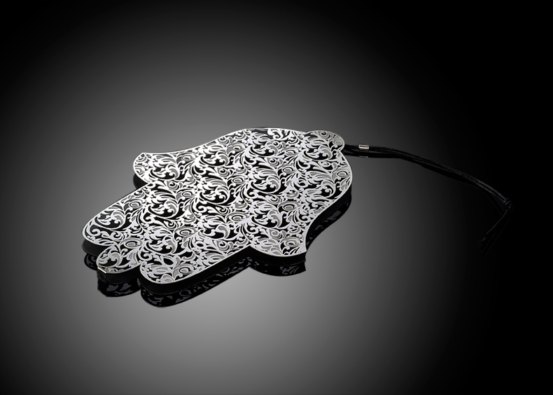 זוג פמוטים עם אותיות ברכת הנרות אומנות התחרה במתכת נירוסטה ניתן לרכוש מגש בעלות נוספת