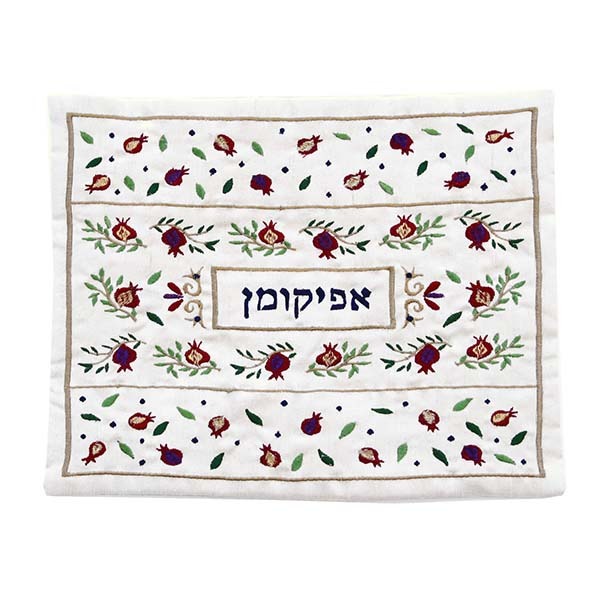 בכיסוי מצות זה מופיעים ענבים ופרחים בצורות שונות. הגפן במסורת היהודית מהווה סמל של ברכה ושפע. בכיסוי המצות, ישנן שלוש בטנות שבתוכם ניתן להכניס את שלושת המצות במהלך ליל הסדר.
