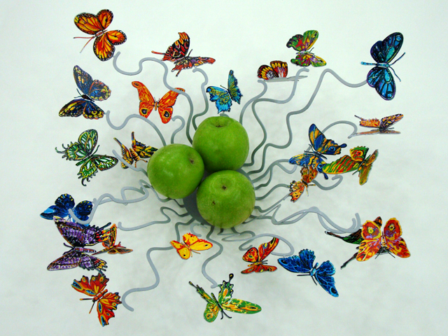 קערת פרפרים מדהימה ביופיה פריט עיצובי יוקרתי להציב על שולחן או תליה על הקיר. ניתן לכוון את הפרפרים לגובה המתאים.